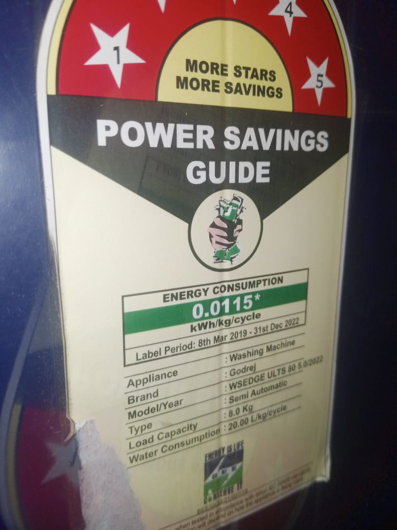 The Godrej 8 kg semi-automatic washing machine (Model WSEDGE ULTS 80 5.0/2022) is engineered to provide effective cleaning with optimized energy and water use. With an energy consumption rate of 0.0115 kWh per kg per cycle, it helps reduce power costs, while the 20.00 L/kg/cycle water consumption rate makes it a water-efficient option. This model is ideal for medium-sized households looking for dependable performance with efficient resource usage.