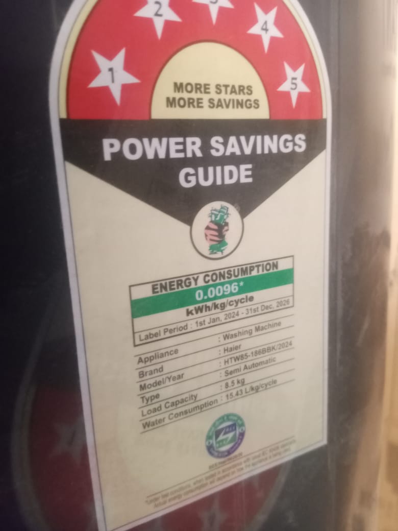 The Haier 8.5 kg semi-automatic washing machine (Model HTW85-186BBK) is built for efficient and eco-friendly washing. With an energy consumption rate of just 0.0096 kWh per kg per cycle, it’s designed to keep electricity usage low. The water consumption is 15.43 L/kg/cycle, making it a water-efficient choice for daily laundry. This model is perfect for families looking for a reliable, cost-effective solution with sustainable features.