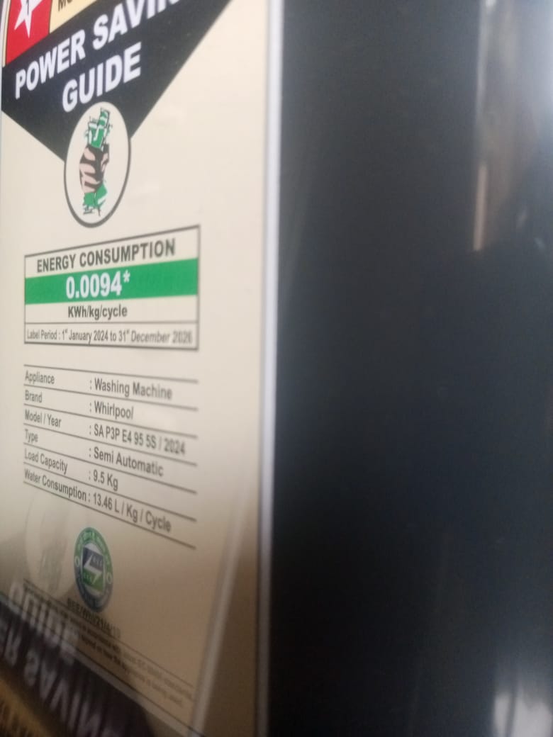 Water Consumption : 13.46 L/Kg/Cycle